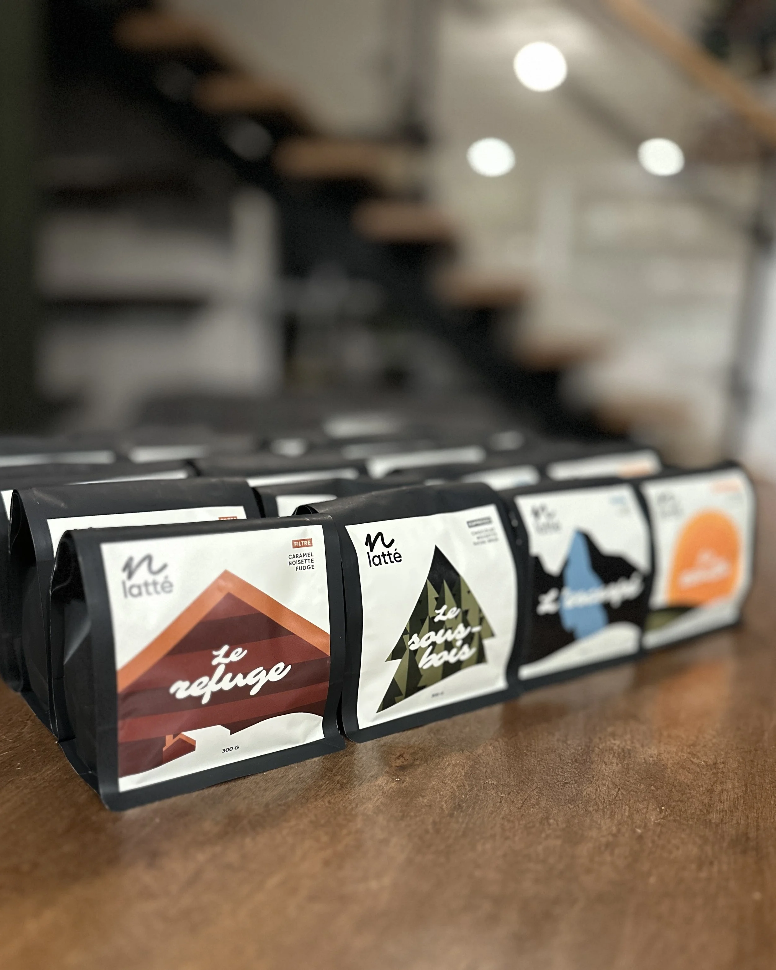Les mêmes cafés que l’on sert au comptoir, disponibles en sacs pour emporter.